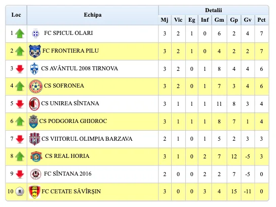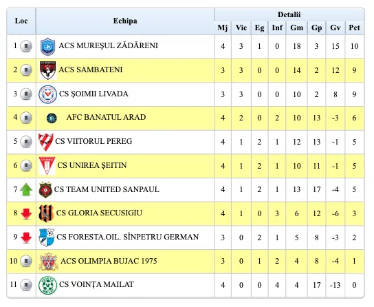Săptămâna viitoare, 4-5 octombrie, ora 15: FC Sântana – Olari, Ghioroc – Șofronea, Unirea Sântana – Horia, Pilu – Săvârșin, Târnova – Bârzava.